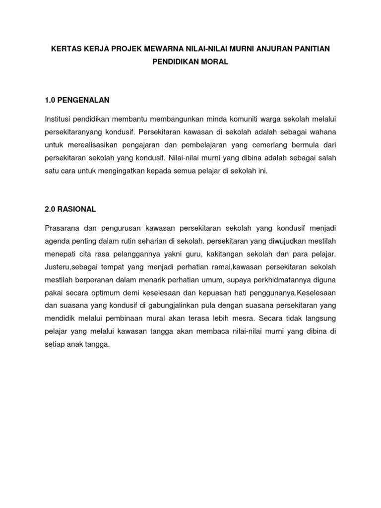 Kertas Kerja Projek Nilai Nilai Murni Pendidikan Moral Pdf